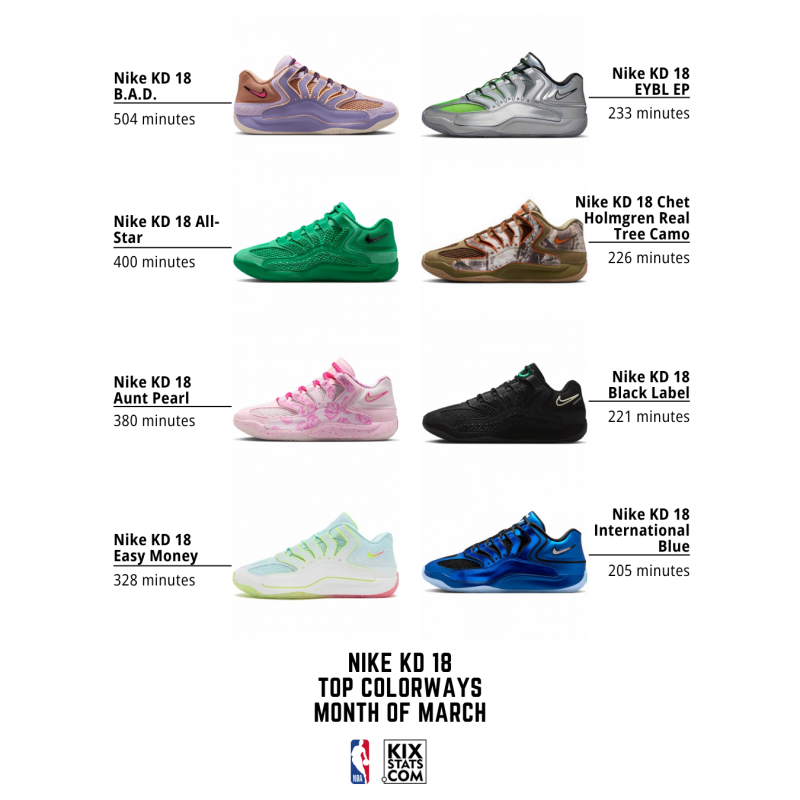 Check out the top 8 kicks by minutes played—sorted by colorways—at the #4 spot in March!👀🔥