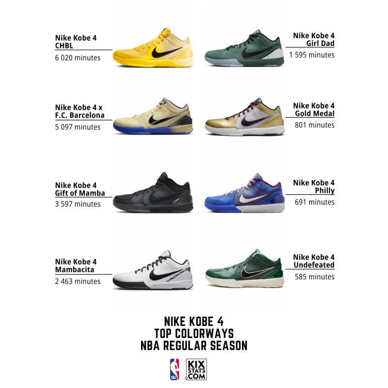 Check out the top 8 kicks by minutes played—sorted by colorways—at the #4 spot during NBA regular season!👀🔥