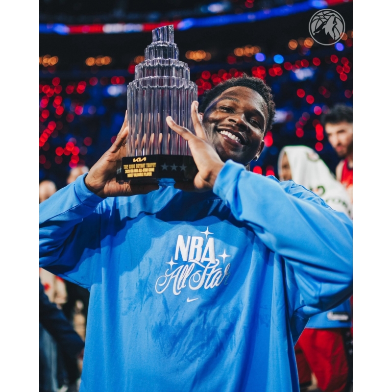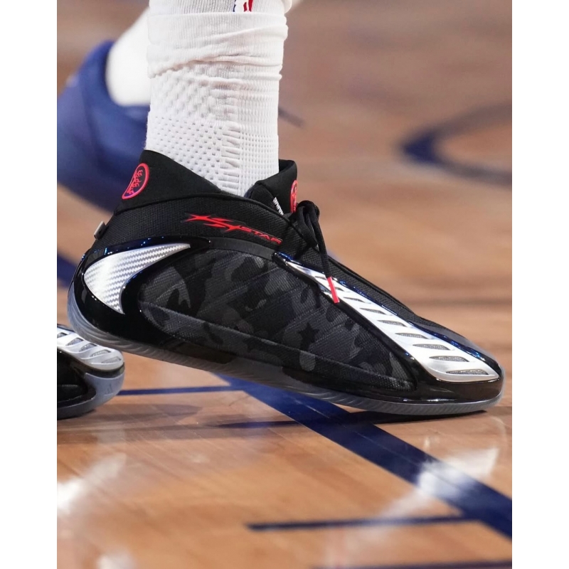 Anthony Edwards from 2026 NBA All-Star Stars last game against 2026 NBA All-Star Stripes played in adidas AE2 Black Camo basketball shoes.