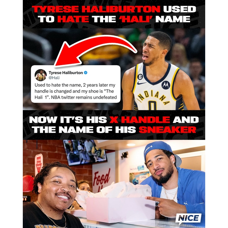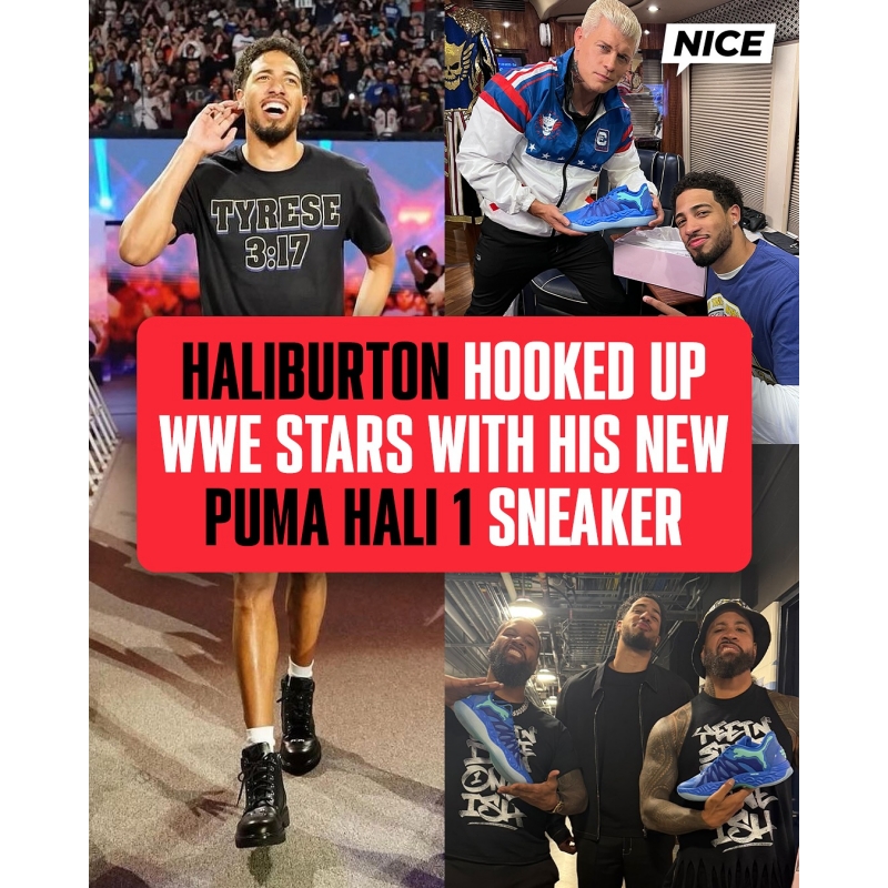 PUMA gives us an official look at Tyrese Haliburton’s signature logo on its new “Overrate THAT” t-shirt dropping on June 4 👀🔥 Hali’s logo was first teased on the heel of an yet-to-be-seen PUMA shoe and then debuted on a custom jacket he wore arriving to Game 3 of the Eastern Conference Finals. Are you ready for a Haliburton signature shoe? 🤔