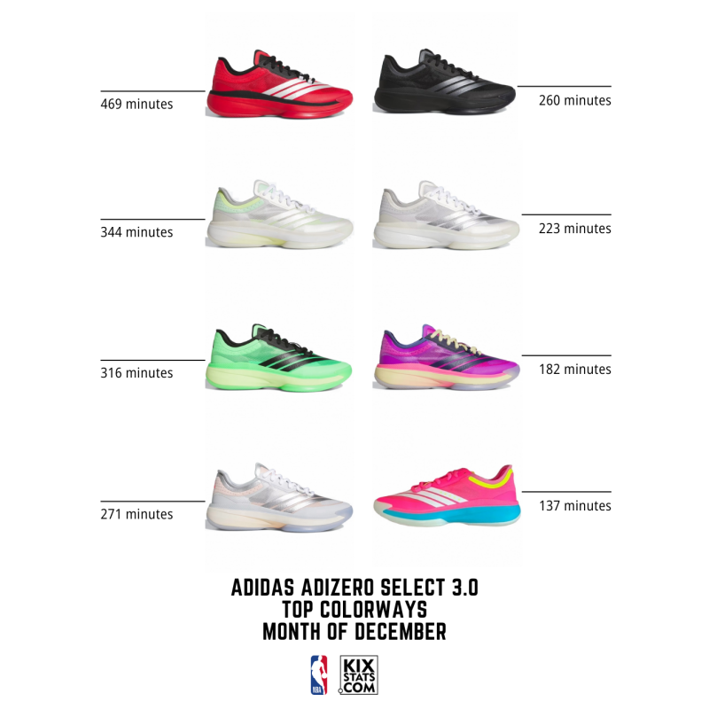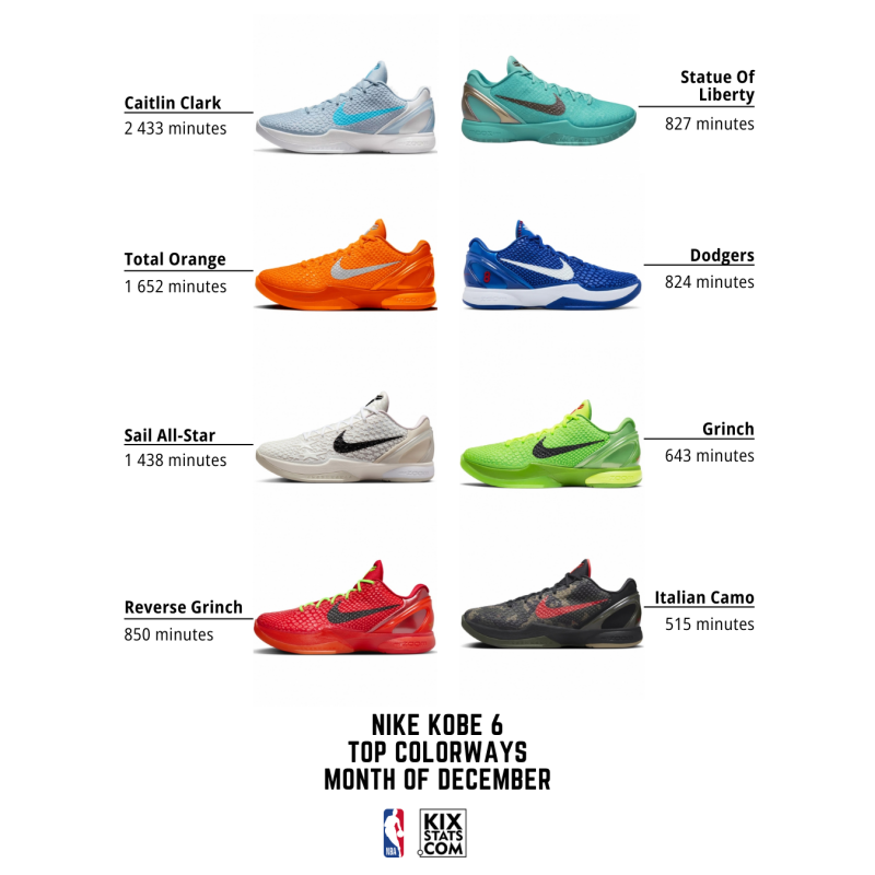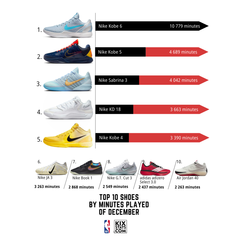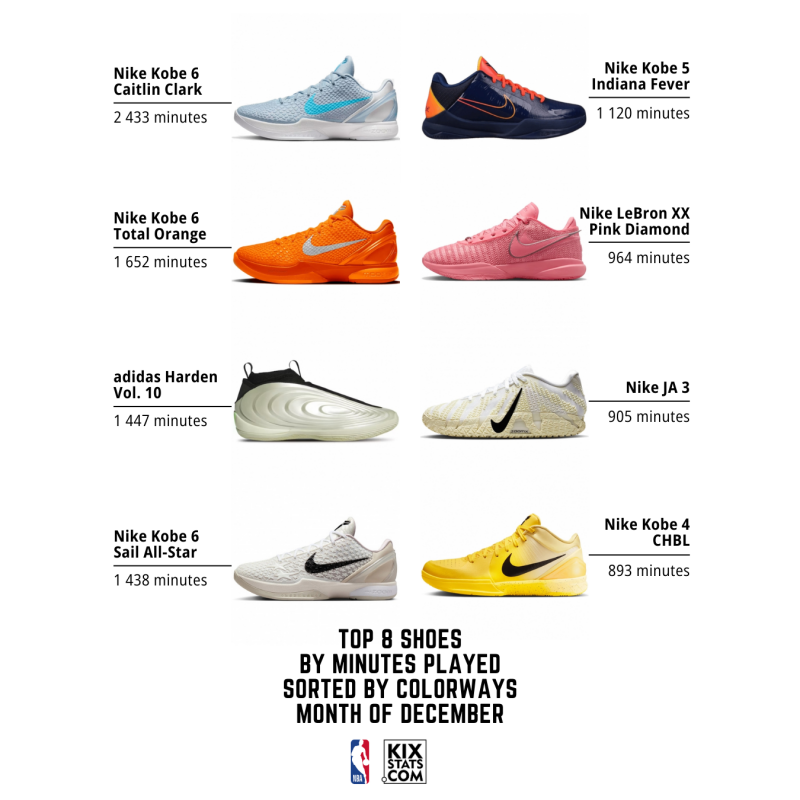 Check out the top 8 kicks by minutes played—sorted by colorways—from the #10–6 spots in December!👀🔥