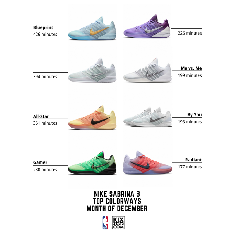 Check out the top 8 kicks by minutes played—sorted by colorways—at the #3 spot in December!👀🔥